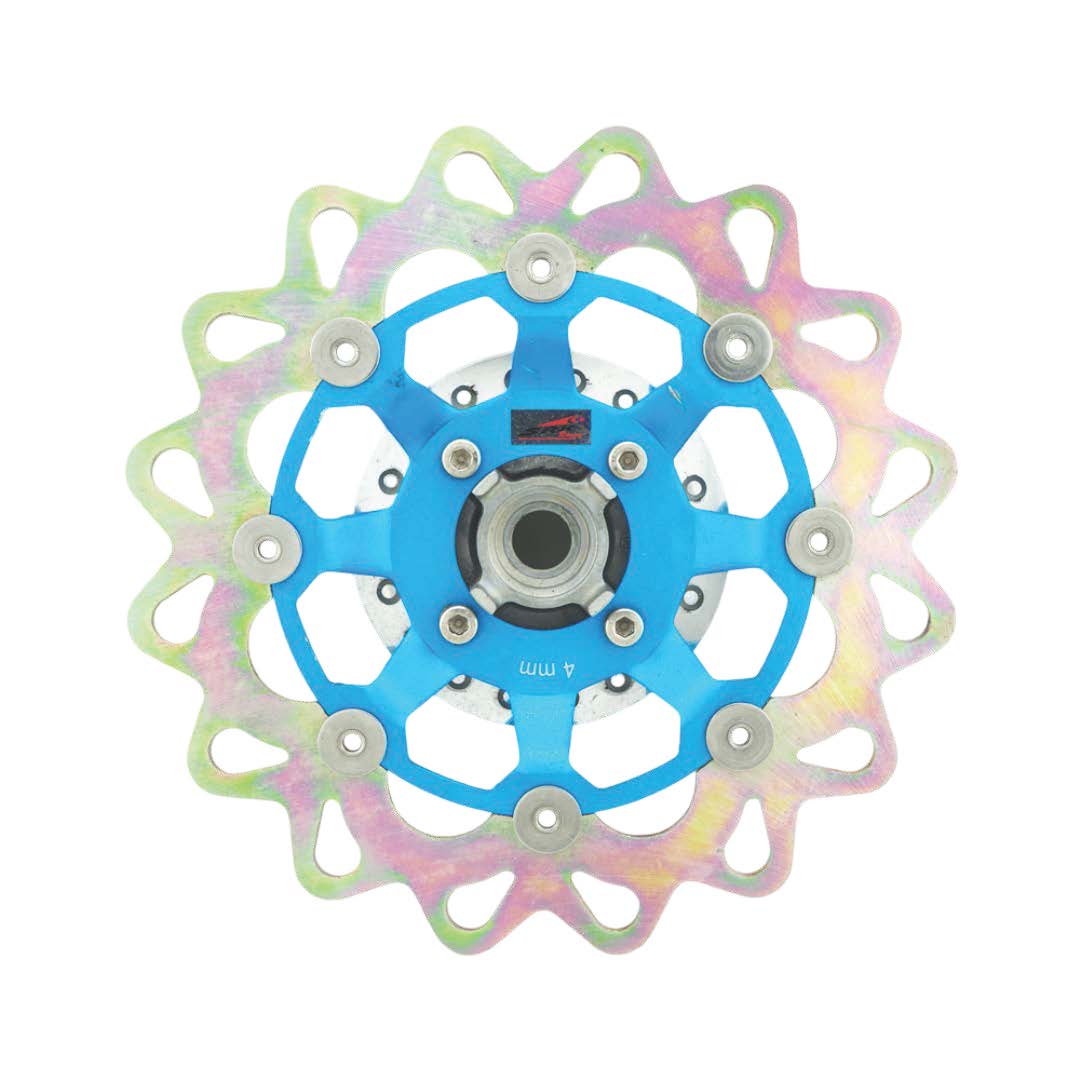 ดุมหน้า+(จานโต 280mm ลายดอกไม้) CLICK, AIR-BLADE (สำหรับโช้ครูเยื้อง) สีฟ้า